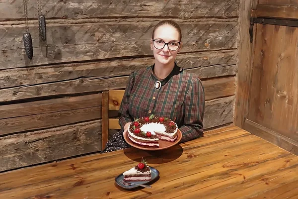 Kolu kõrtsi pagar-kondiiter Hanna Priimägi tordiga "Koit ja Hämarik", mille retsept valmis Eesti Vabariigi sünnipäeva auks.